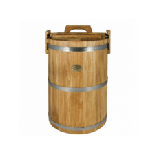 Для хранения большого количества ягод или грибов в загородном доме подойдет выполненная из экологически чистых и безопасных материалов кадка дубовая 100 л «Бонпос» (обручи из нерж. стали), оснащенная крепкими ручками и плотно прилегающей крышкой. В ней также можно засаливать овощи, мариновать рыбу и мясо, хранить домашние субпродукты, опустив кадку в погреб или подвал. 69-сантиметровая высота при 100-литровом объеме достаточна для хранения больших запасов солонины или лесных грибов. Собственный вес кадки при этом равняется 18 кг в закрытом состоянии.