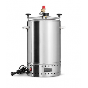 Автоклав «МАЛИНОВКА 2в1 PRO версия 3» на 35 литров имеет на выбор три режима работы, а именно «на воде», «на пару» и как самогонный аппарат. При использовании аппарата как самогонный аппарат нужно докупить отдельно дистиллятор или колонны. Устройство выполнено из нержавеющей стали, с толщиной стенок 1,5 мм и дна 2 мм. Сверху располагается защитный клапан, манометр и термометр. Аппарат обладает толстой силиконовой прокладкой, которая устойчива к нагреванию и выполнена из пищевого силикона, а не из резины. В аппарате используются болты для крышки, вместо шпилек. Они позволяют производить их закрепление без подготовки и не сломаются в самый неподходящий момент.