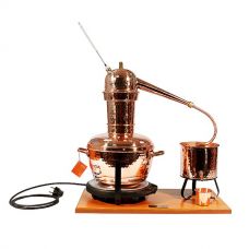 Аламбик 6 л на деревянной основе в Нальчике – самый древний аппарат для приготовления крепких напитков. Главное отличие этого устройства от обычного самогонного аппарата – его материал изготовления. Медь вступает в реакцию с жидкостью и, осаждая оксид серы, делает вкус алкоголя мягче.